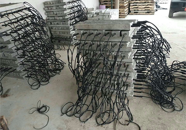 以上的鎂合金犧牲陽(yáng)極也可以經(jīng)組裝后提供給客戶。裸陽(yáng)極首先和電纜連接,連接部位 用環(huán)氧樹脂密封。然后加填充料封裝在棉布袋里。