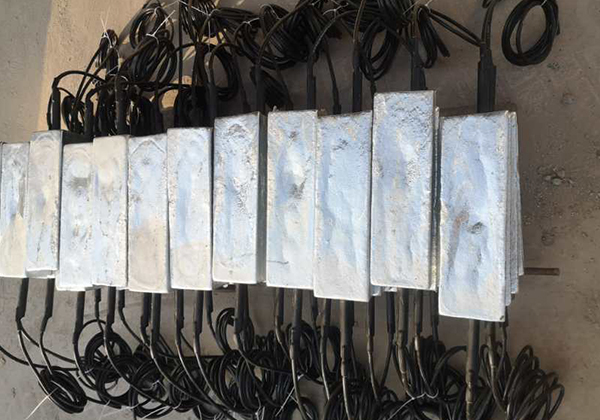 根據(jù)電化學(xué)原理,從鎂合金陽(yáng)極材料體上通過(guò)土壤、水等電解質(zhì)向被保護(hù)體如鋼質(zhì)結(jié)構(gòu)提供陰極電流,使被保護(hù)的鋼質(zhì)結(jié)構(gòu)進(jìn)行陰極化,實(shí)現(xiàn)陰極保護(hù)。隨著電流的不斷流動(dòng),陽(yáng)極材料不斷消耗掉。這就是犧牲陽(yáng)極名稱的由來(lái)?!〕商祖V犧牲陽(yáng)極,由鎂犧牲陽(yáng)極錠1支,一根VV-10㎜2電纜3米,填包料50kg,棉布口袋1條,塑料編織袋1條組成。即棉布口袋內(nèi)有鎂犧牲陽(yáng)極錠1支其鐵芯上焊VV-10㎜2電纜3米1根,焊接處做絕緣處理,并套有熱縮管。鎂犧牲陽(yáng)極錠周圍均勻分布50kg填包料。棉布口袋外套塑料編織袋1條。